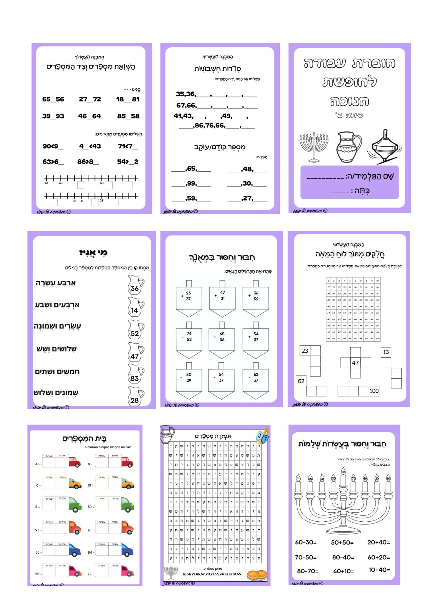 חוברת תרגול במתמטיקה לחנוכה- כיתה ב'