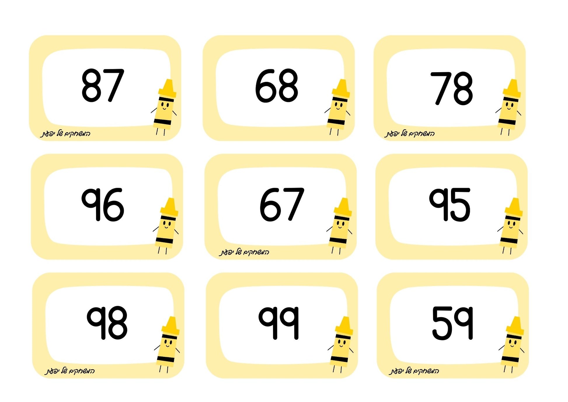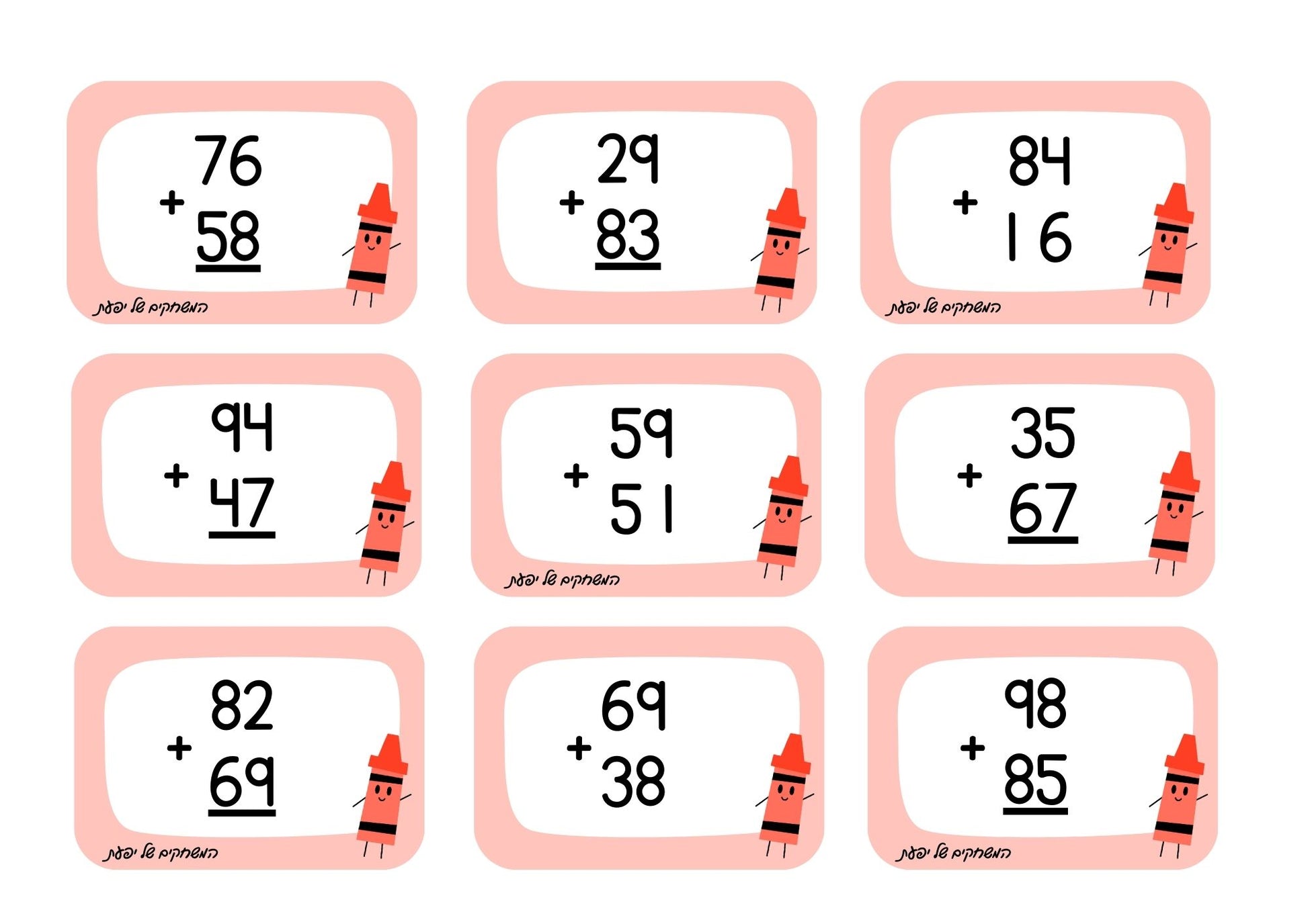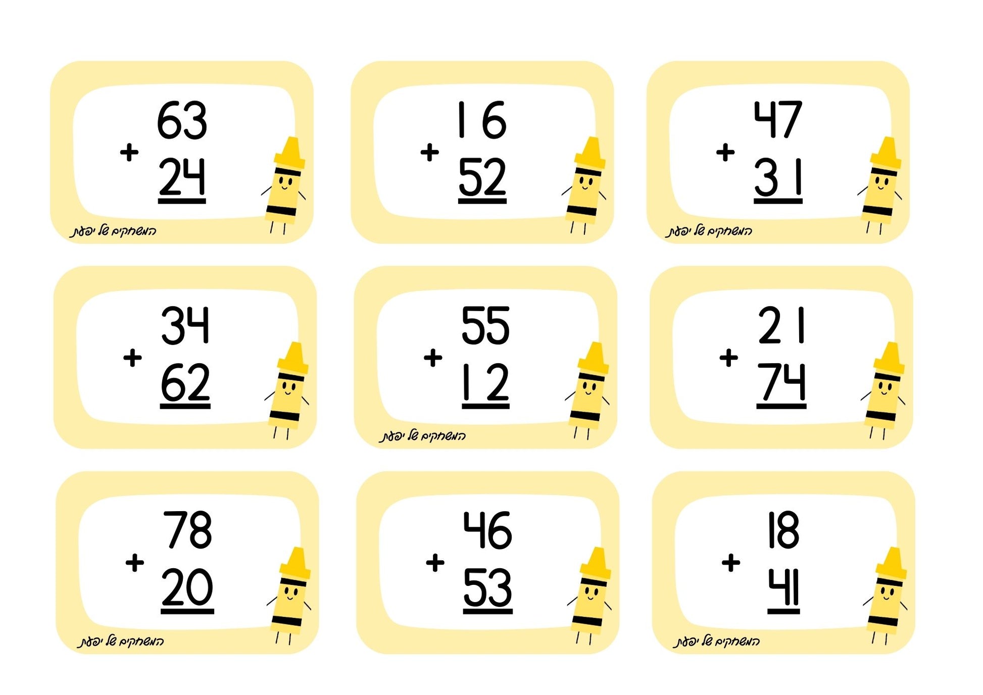 27 כרטיסיות חיבור וחיסור ללא המרה בצבע צהוב.