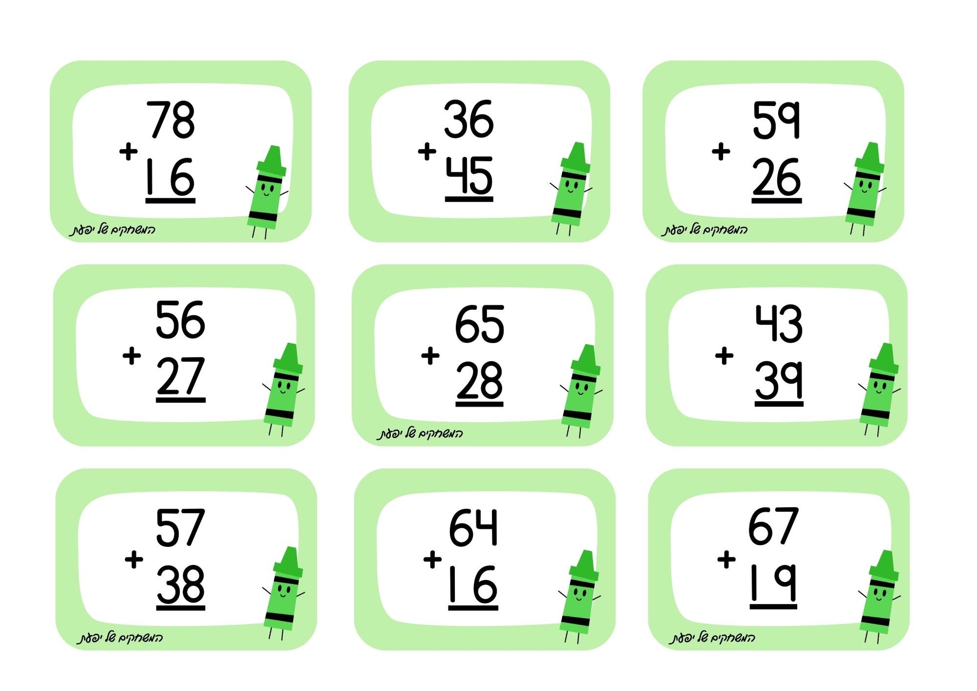 27 כרטיסיות חיבור וחיסור עם המרה בצבע ירוק.