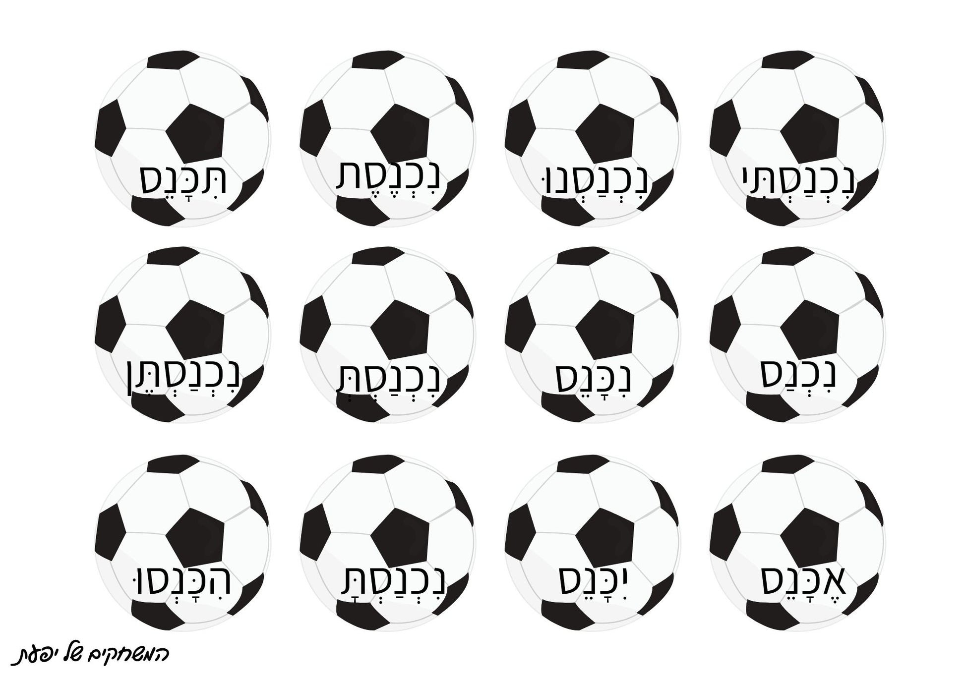תרגול משפחות מילים (פעלים, שורשים, גופים וזמנים) בנושא כדורגל!